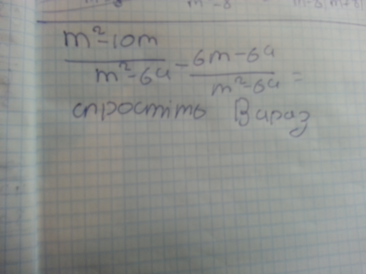 (m -8)^2 / ((m-8)(m+8)), сокращаем на (m-8) и получаем окончательный результат: (m-8) / (m+8)