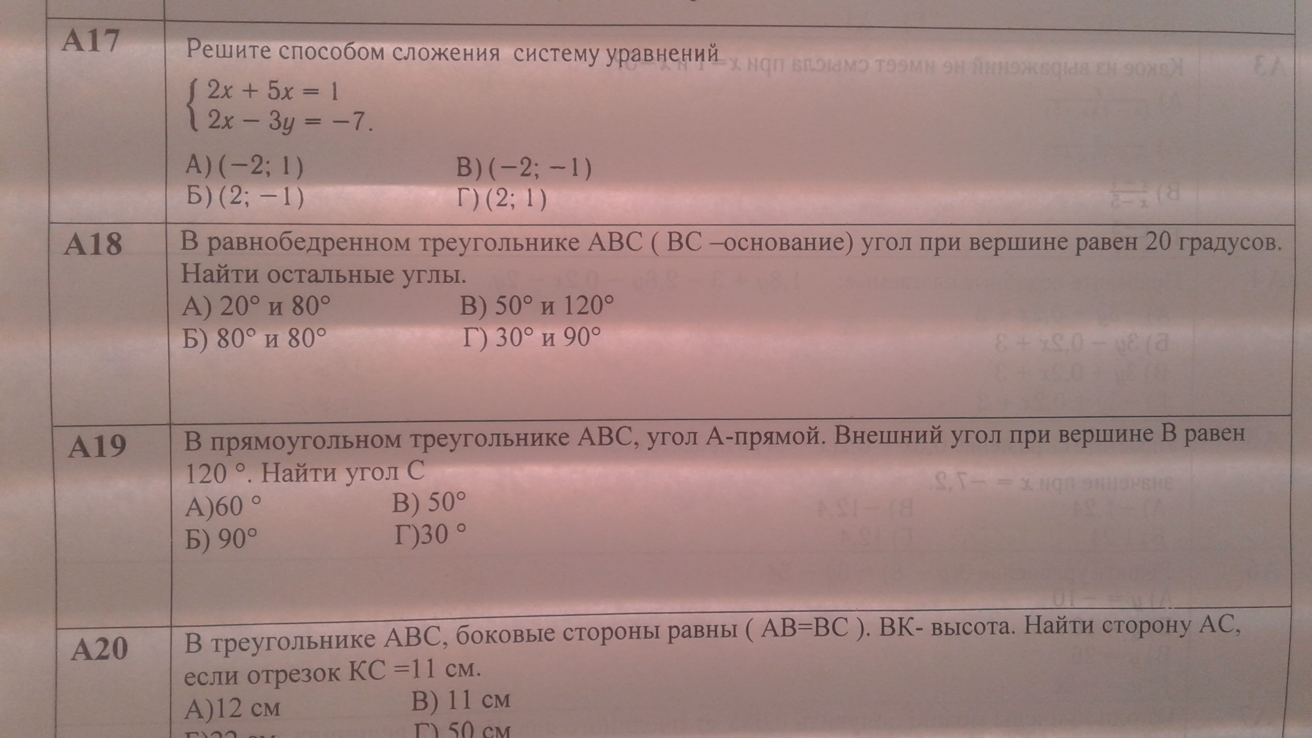Ответ Б, так как углы в равнобедренном треугольнике при основании равны