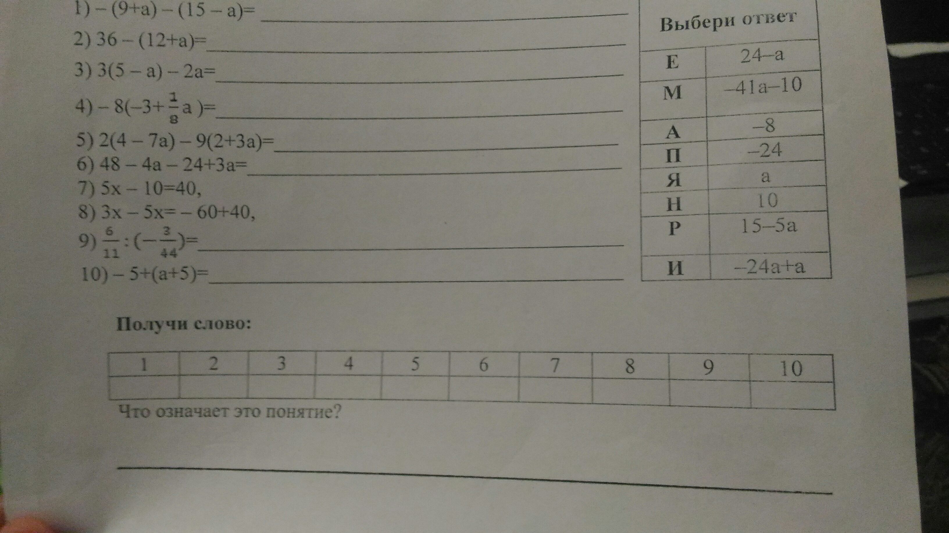 6. 48-4a-24+3a=24-a