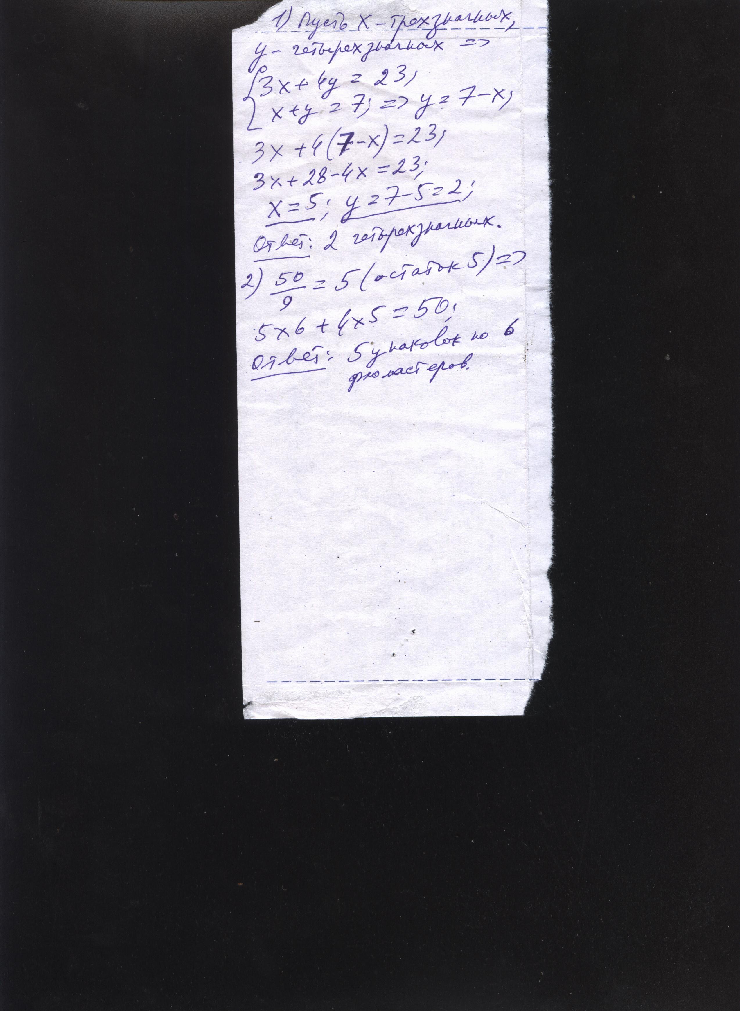1)Ваня записал 7 чисел, часть из них - трёхзначные, часть - четырёхзначные. Всего Ваня написал 23 цифры. Сколько четырёхзначных чисел записал Ваня?