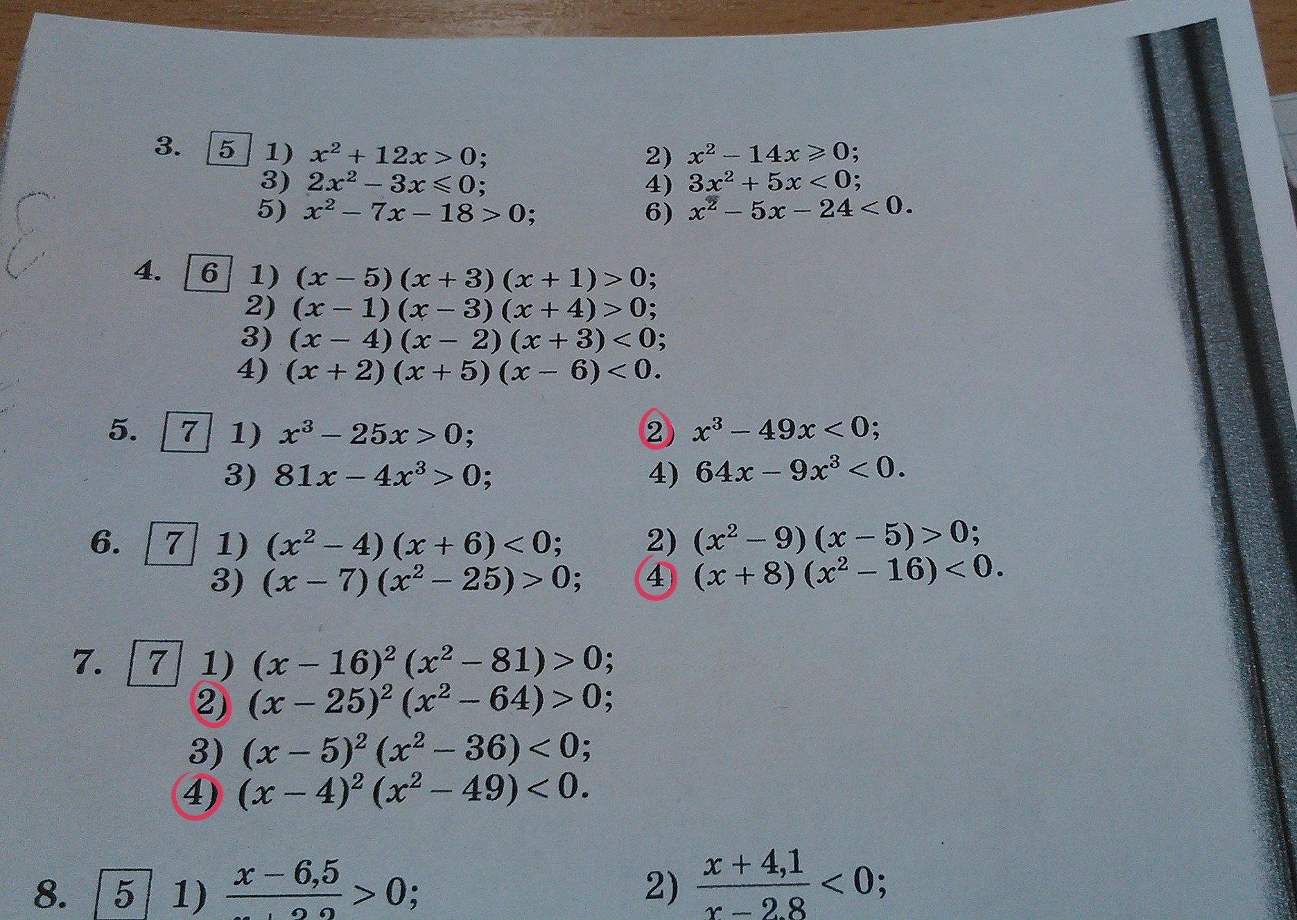 Решите отмеченные неравенства:
