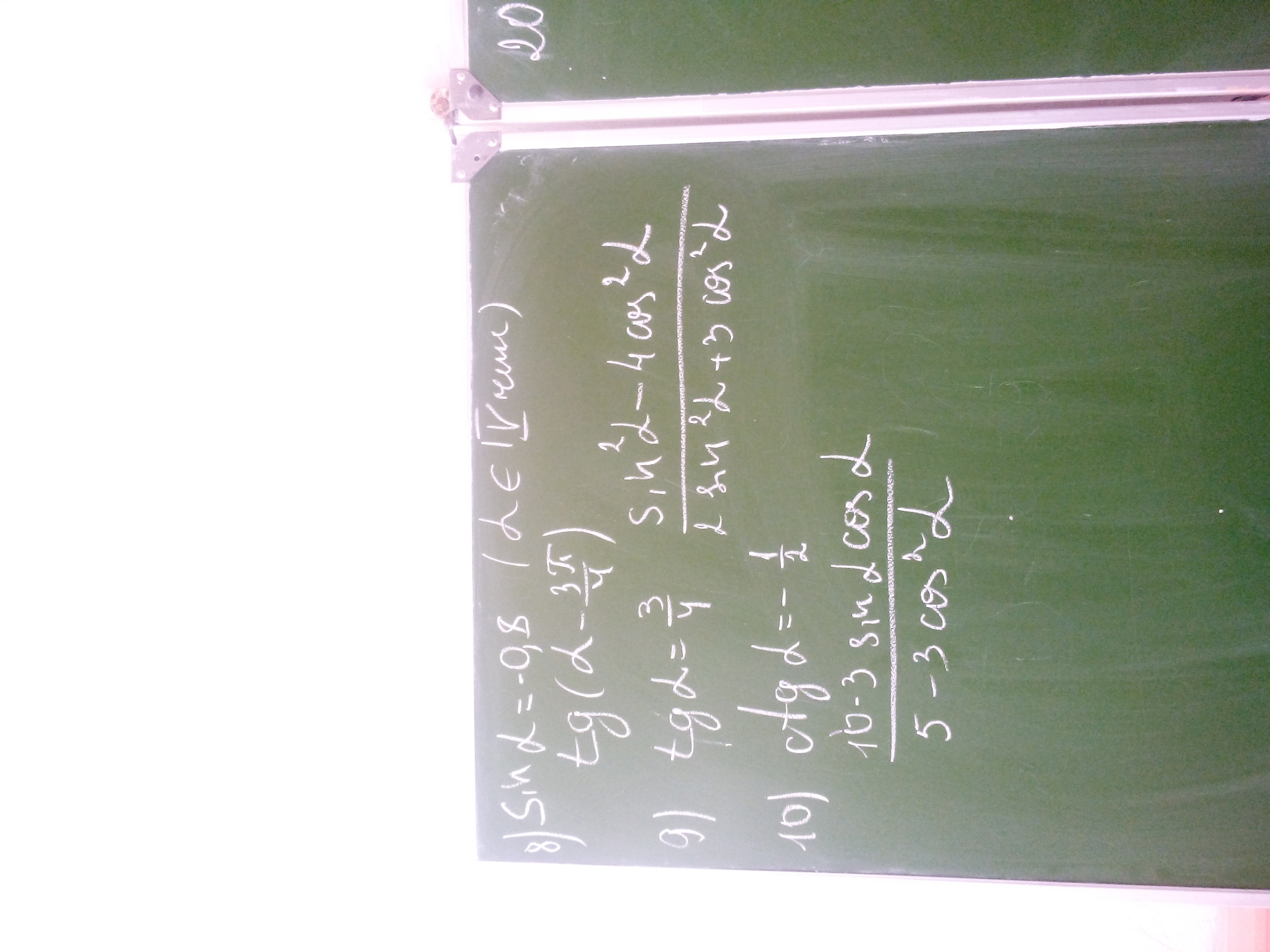 10) 30 ctgα/ 5 -3ctg²α = 30·(-1/2) / 5-3·1/4 =3,9/17;