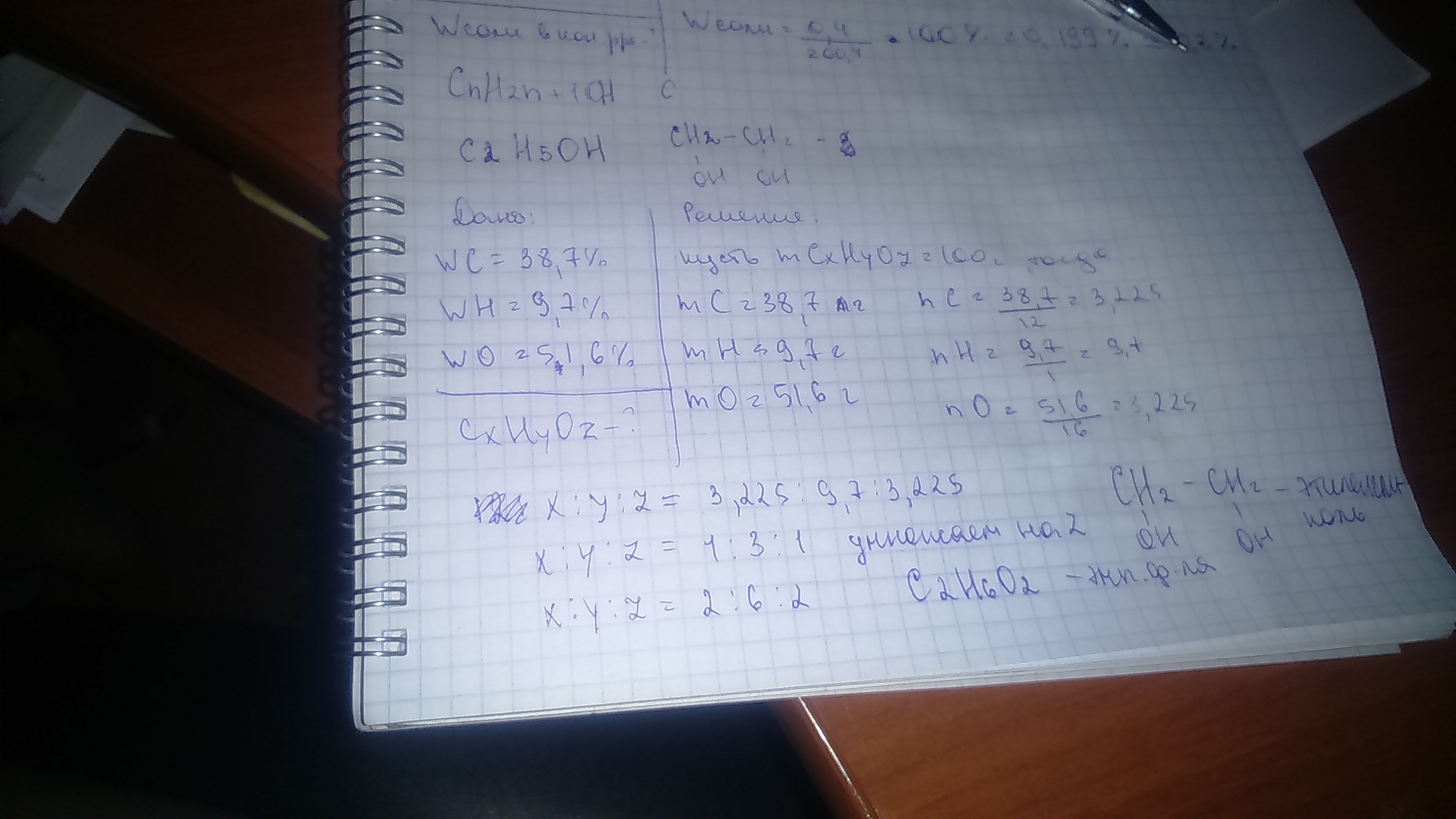 найдите молекулярную формулу спирта в котором массовые доли : углерода -38,7%, водорода -9,7% , кислорода -51,6%