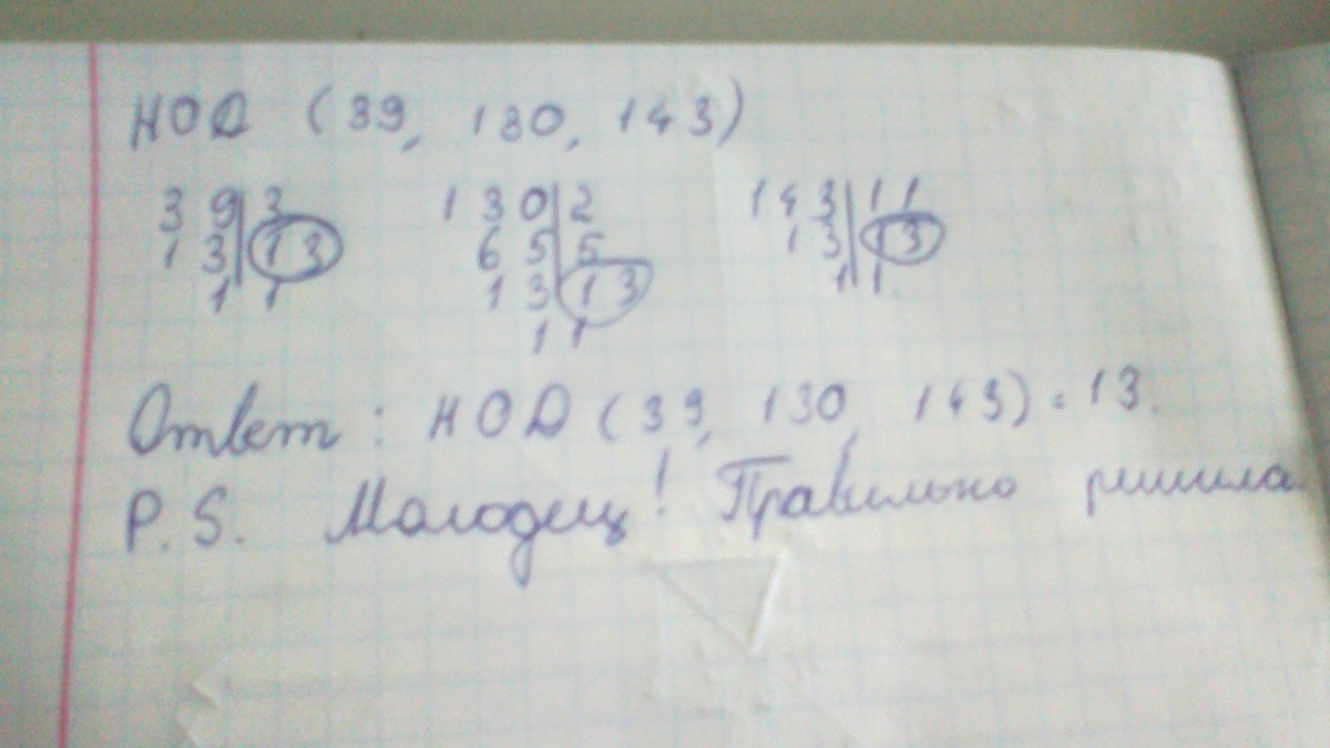 Как найти нод 39,130,143? Я решила получила нод 13. Проверьте пож-та правильно или нет. Спасибо.