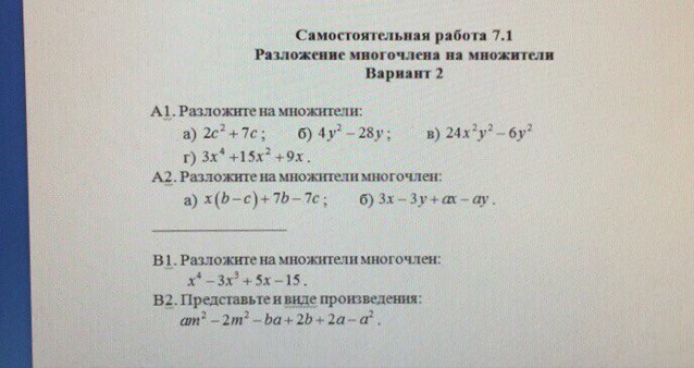 а) bx-cx+7b-7c= 7b(x-1) + c (x-1)= (x-1)(7b+c)