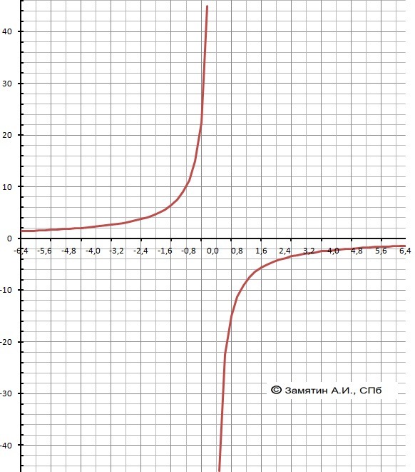 1. Область допустимых значений - Х≠0 - разрыв при Х=0.