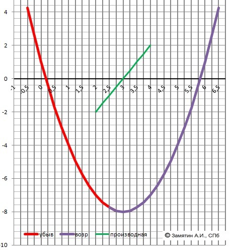 F'(x) = 2x - 6 = 2*(x-3).