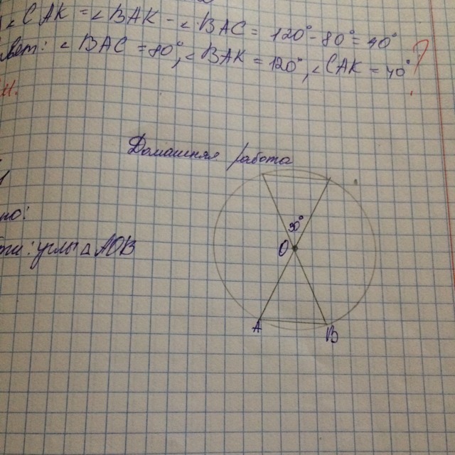 это вертикальный угол, ответ такой же как и у верхнего треугольника