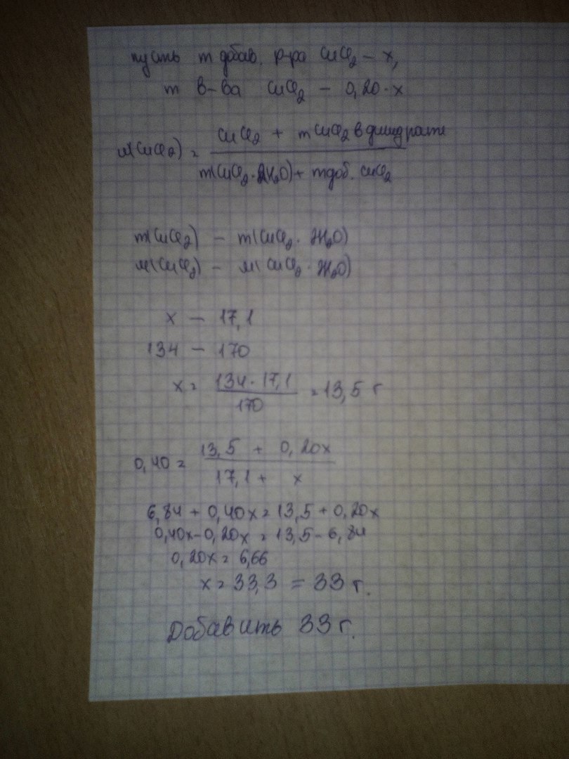 Сколько граммов 20%-ного раствора хлорида меди нужно добавить к 17.1 дигидрата хлорида меди для получения 40%-ного раствора