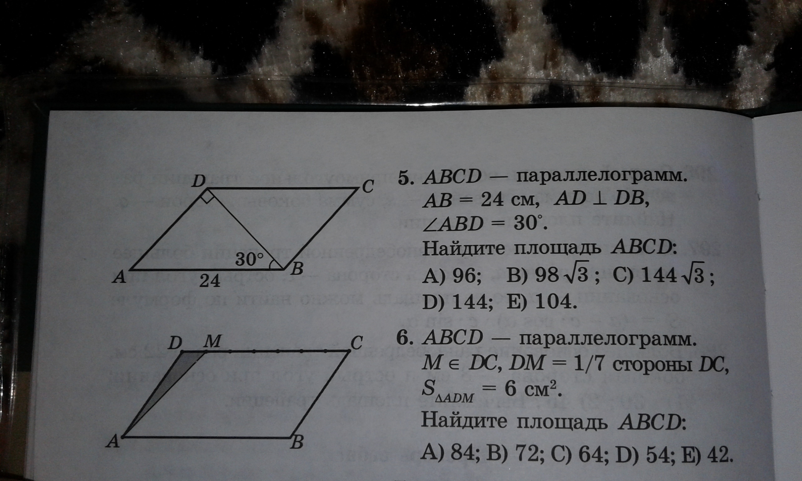 Sabcd = AD*AB*sinDAB = 12*24*(корень_из_3 / 2) = 144 корней из 3.