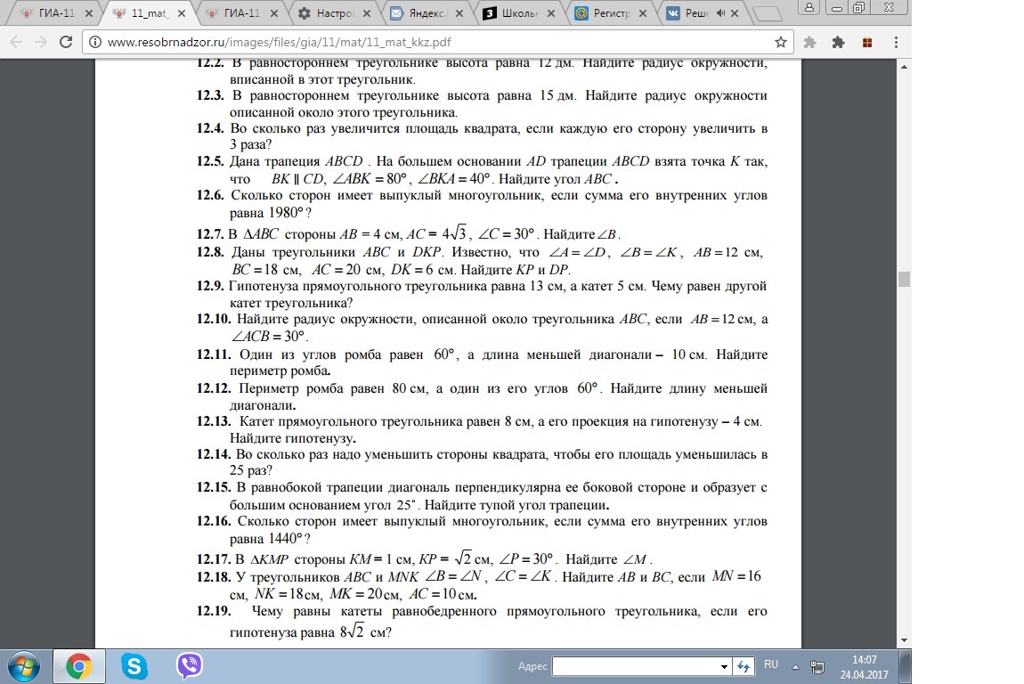 9. по теореме Пифагора квадрат гипотенузы равен сумме квадратов катетов, значит неизвестный катет находится: корень квадратный из 13 в квадрате - 5 в квадрате=корень квадратный 169-25= корень квадратный из 144=12 (см.)-неизвестный катет