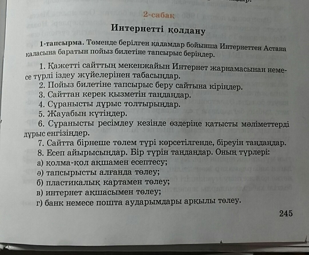 1- задание . Благодаря ниже перечисленным пунктам в интернете дайте заказ на билет поезда который отправится в Астану