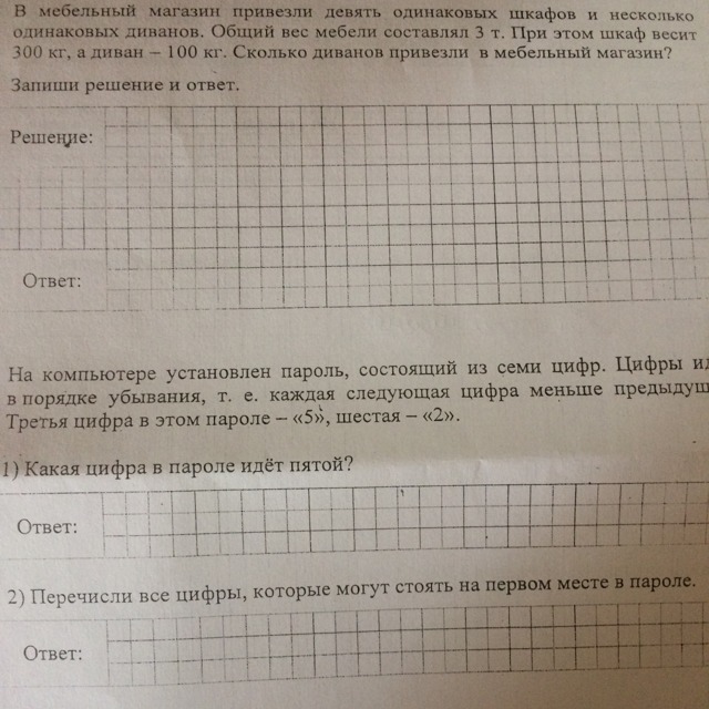 1. 1) 300*9 = 2700кг- весят 9 шкафов