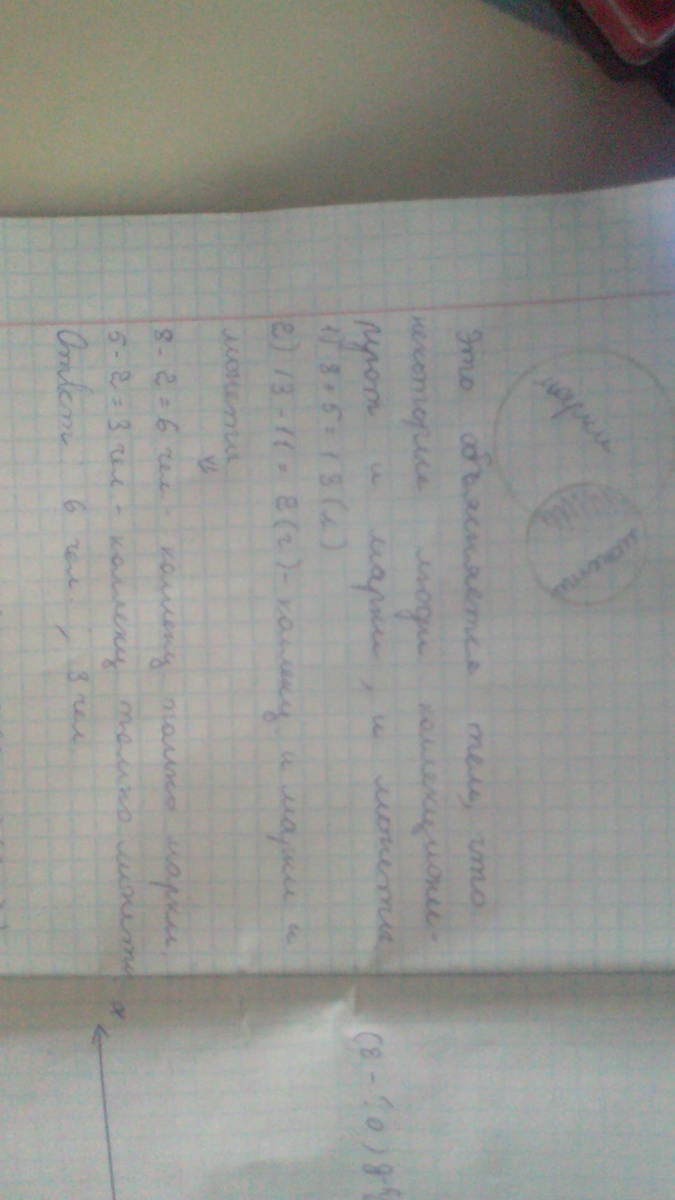 Марки коллекционируют 8 человек, монеты 5, а всего коллекционеров 11. Объясните, как это может быть. Сколько человек коллекционируют только марки, а сколько - монеты.