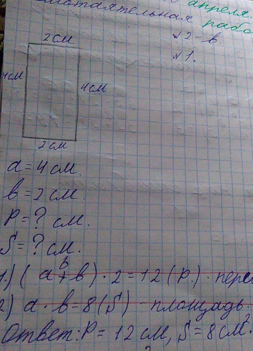 площадь=2*4=8см^2