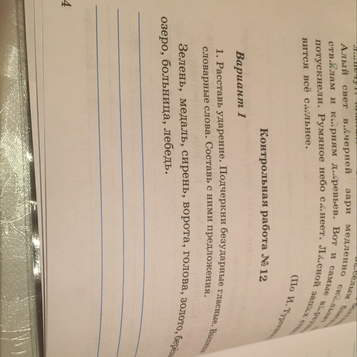Расставь ударение. Подчеркни безударные гласные. Выпиши слова. Составь с ними предложения