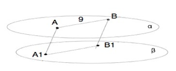 Плоскости α и β параллельны. Через точки А и В плоскости α проведены параллельные прямые, пересекающие плоскость β в точках А1 и В1 соответственно. А1А: АВ = 1: 3, АВ = 9 см. Найдите периметр А1АВВ1.