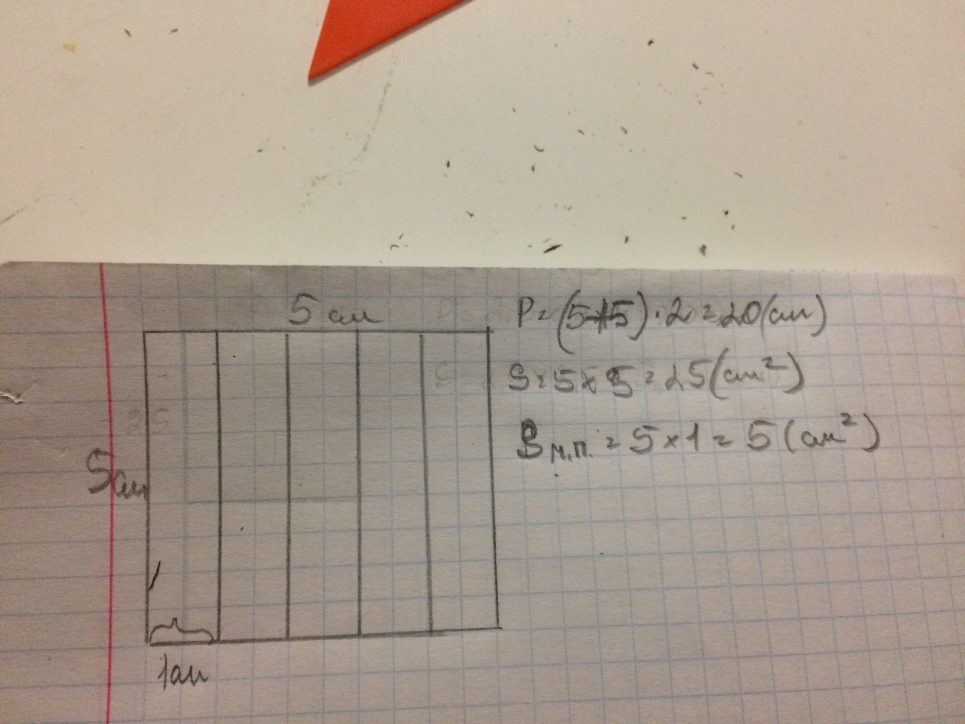 Начерти в тетради квадрат,пиреметр которого равен 20 см. Чему равна площадь этого квадрата? Раздели квадрат на 5 равных прямоугольников. Найди площадь каждого такого прямоугольника.