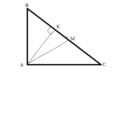 прямоугольного треугольника к гипотенузе проведены медиана АМ и высота АК.