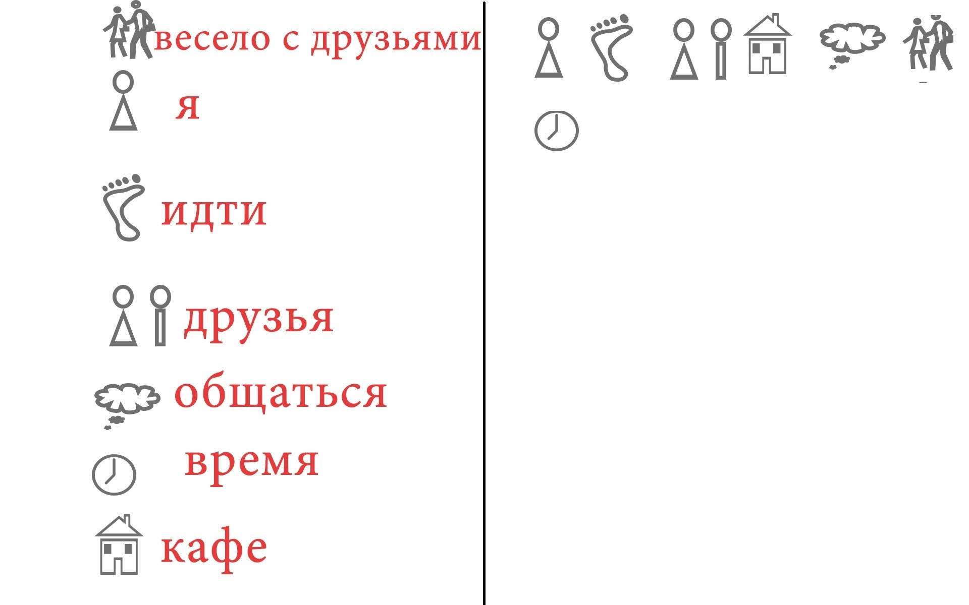 напиши рассказ "встреча с друзьями в кафе" с помощью схем,знаков , рисунков