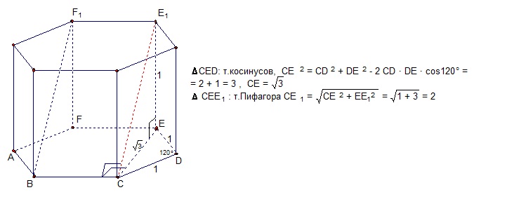 В правильной шестиугольной призме ABCDEFA1B1C1D1E1F1, все ребра которой равны 1,найдите расстояние от точки С до прямой F1E1.