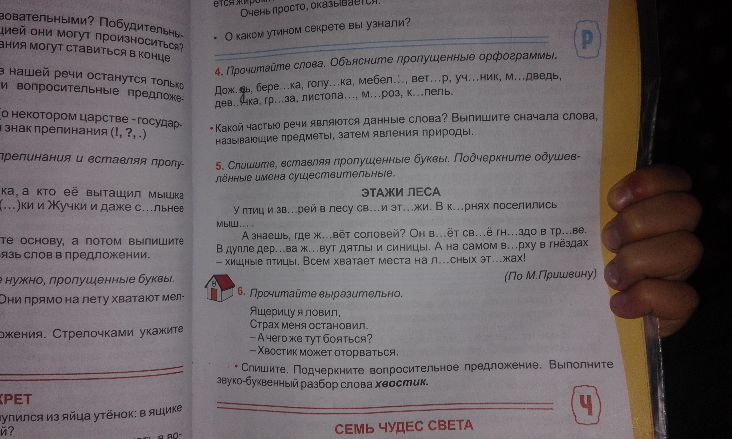 В дупле дерева живут дятлы и синицы.А на самом верху в гнёздах-хищные птицы.Всем хватает места на лесных этажах.