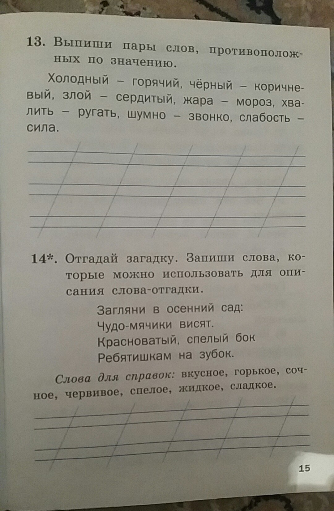 В 14 ответ яблоко. Яблоко может быть круглое, румяное, кислое, зеленое. Больше не знаю, простите. Спросите у родителей или поищите в интернете информацию о том, какими прилагательными можно описать плод яблони. Яблоко.
