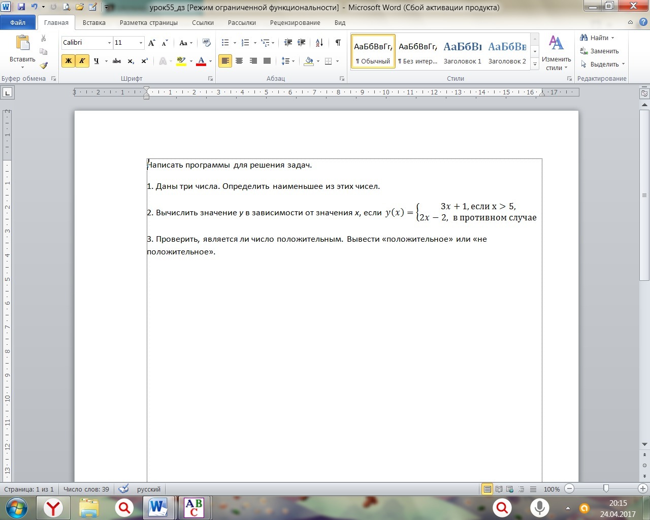 Надо составить программу в паскале!!!!!!!!!!!