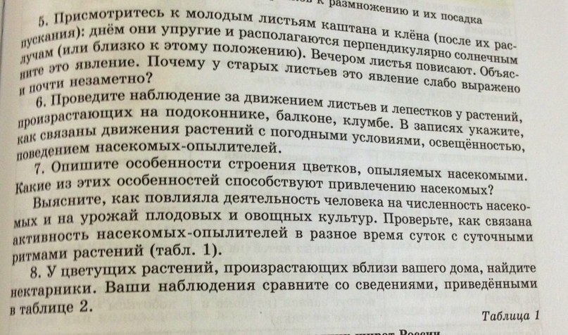 5.Листья стремятся как можно больше тянутся к солнечному свету, на стебле располагаются листовой мозаикой.А повисают вечером,наверное,потому что солнечного света мало или нет вообще и пропадает необходимость.7.Цветы опыляемые насекомыми,обычно имеют яркую окраску,сладкий нектар,и яркий сильный запах,привлекающий насекомых.Так же цветки располагаются по несколько, в соцветия,чтобы их было лучше заметно.Обычно располагаются не у самой земли,а на длинном стебле,так же чтобы их было лучше заметно