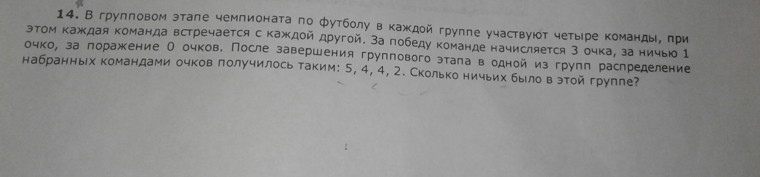 6 - вообще ничего сложного нет просто , у последней команды две ничьи с 3 и 2 потом 1 команда выигрывает у последней и у неё 3 очка и. 1 команда играет с 2и3 в ничью 5 очков и у 2 и 3 по два очка и они играют в ничью сами с собой потом и с 1 командой и у них по 4 очка . Теперь у 1-5оч у 2-4 и у 3-4 и у 4-2