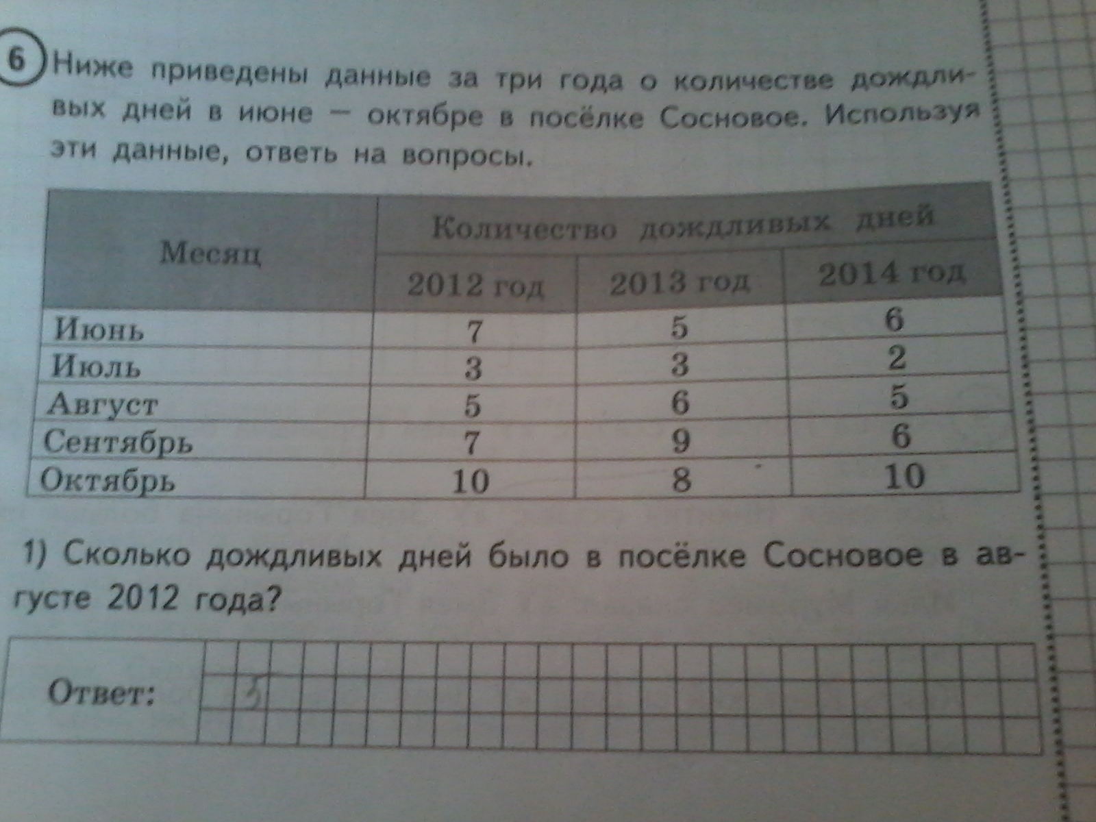 Ответ такой:2012 год,5 дождей