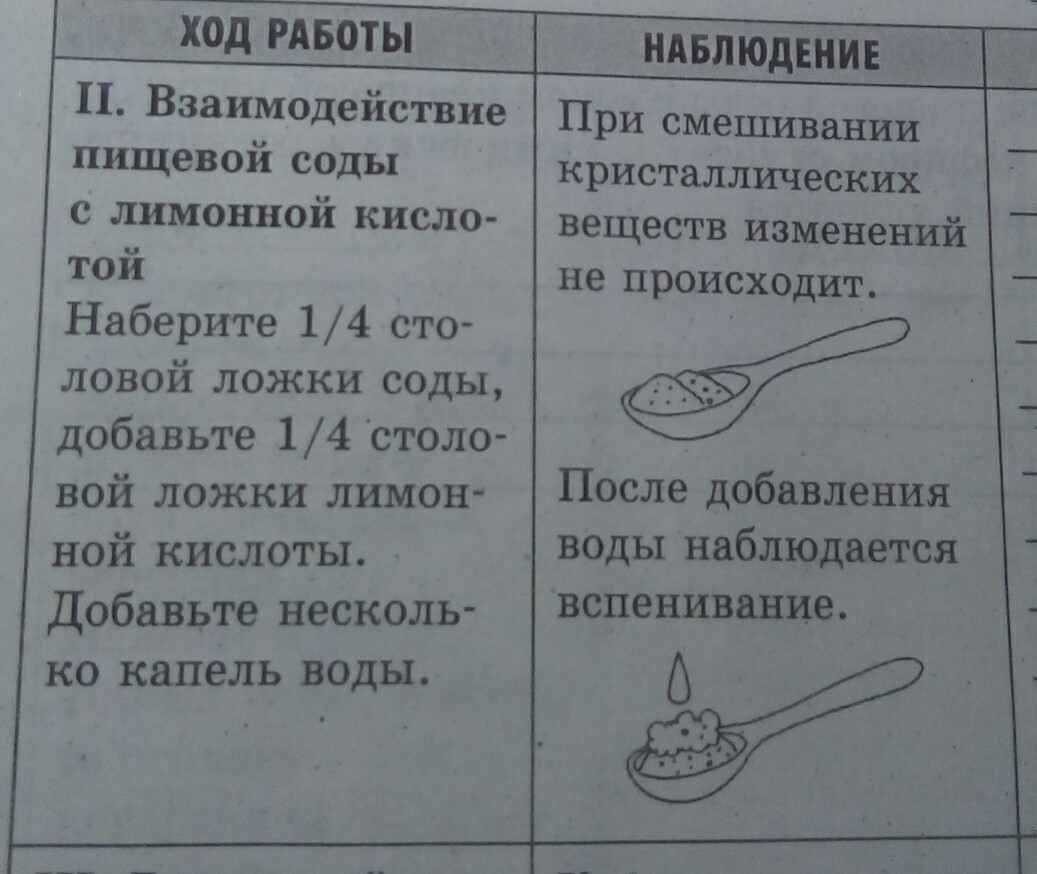 Вывод : лимоная кислота не дает никакого эффекта, а вот вода дает, сода начинается вспениватся.