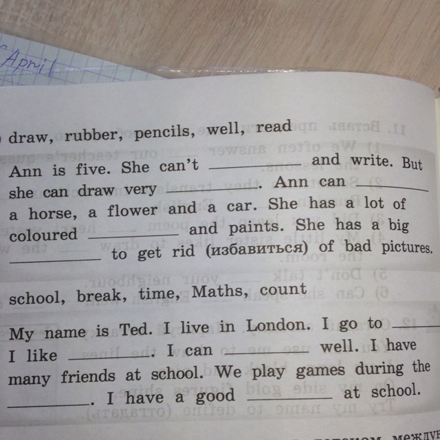 Read. Well. Draw. Pencils. Rubber. #2 school. Maths. Count. Break. Time.