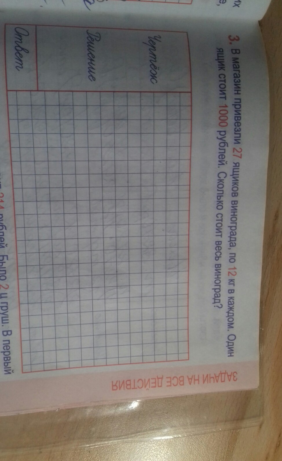 реши задачу в магазин привезли 27 ящиков винограда по 12 кг в каждом один ящик стоит 1000 руб. Сколько стоит весь виноград