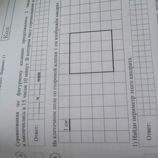 5) 4 клетки= 4 см - сторона квадрата