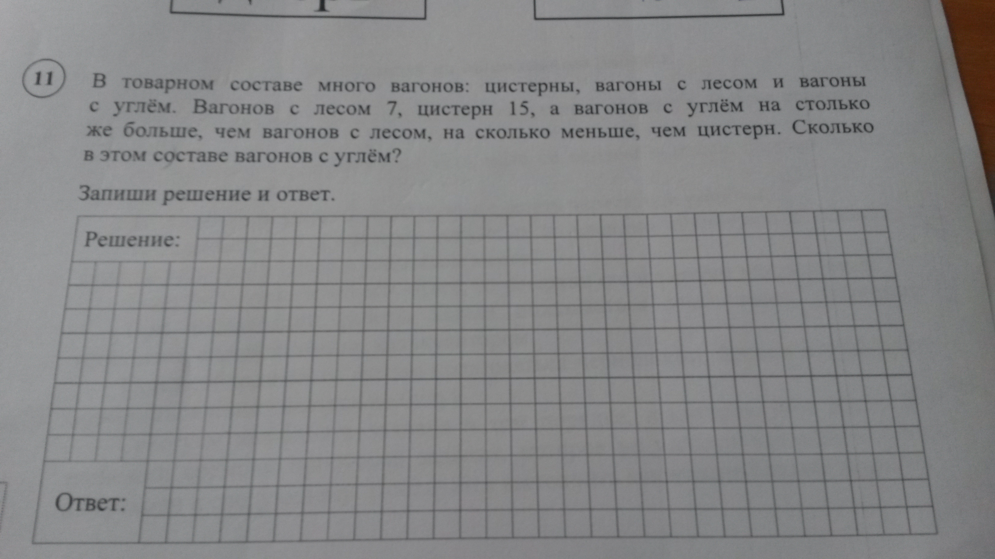 решение тут нет потому что это задание как бы на логику ответ 11. кстати сегодня я писала контрольную. она была итоговая и там был такой же вопрос вариант у меня был 9