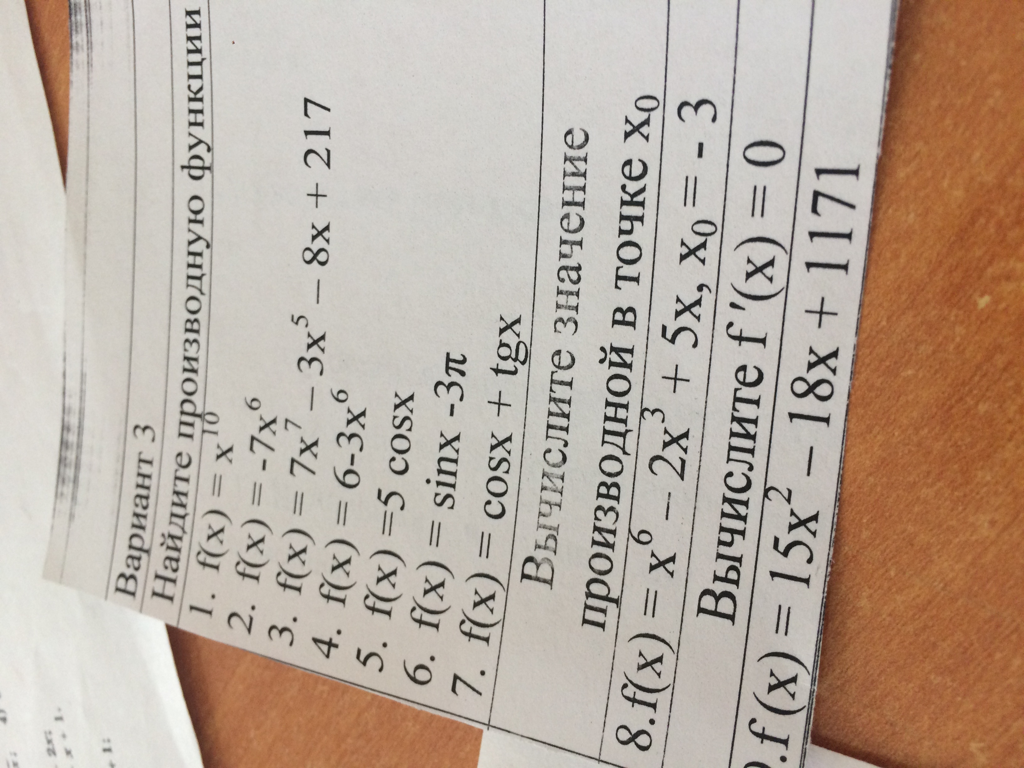 8. f'(x) = 6x⁵-6x² + 5 f'(-3) = 6*(-3)⁵- 6*(-3)² + 5 = -243 -54+5 = -292
