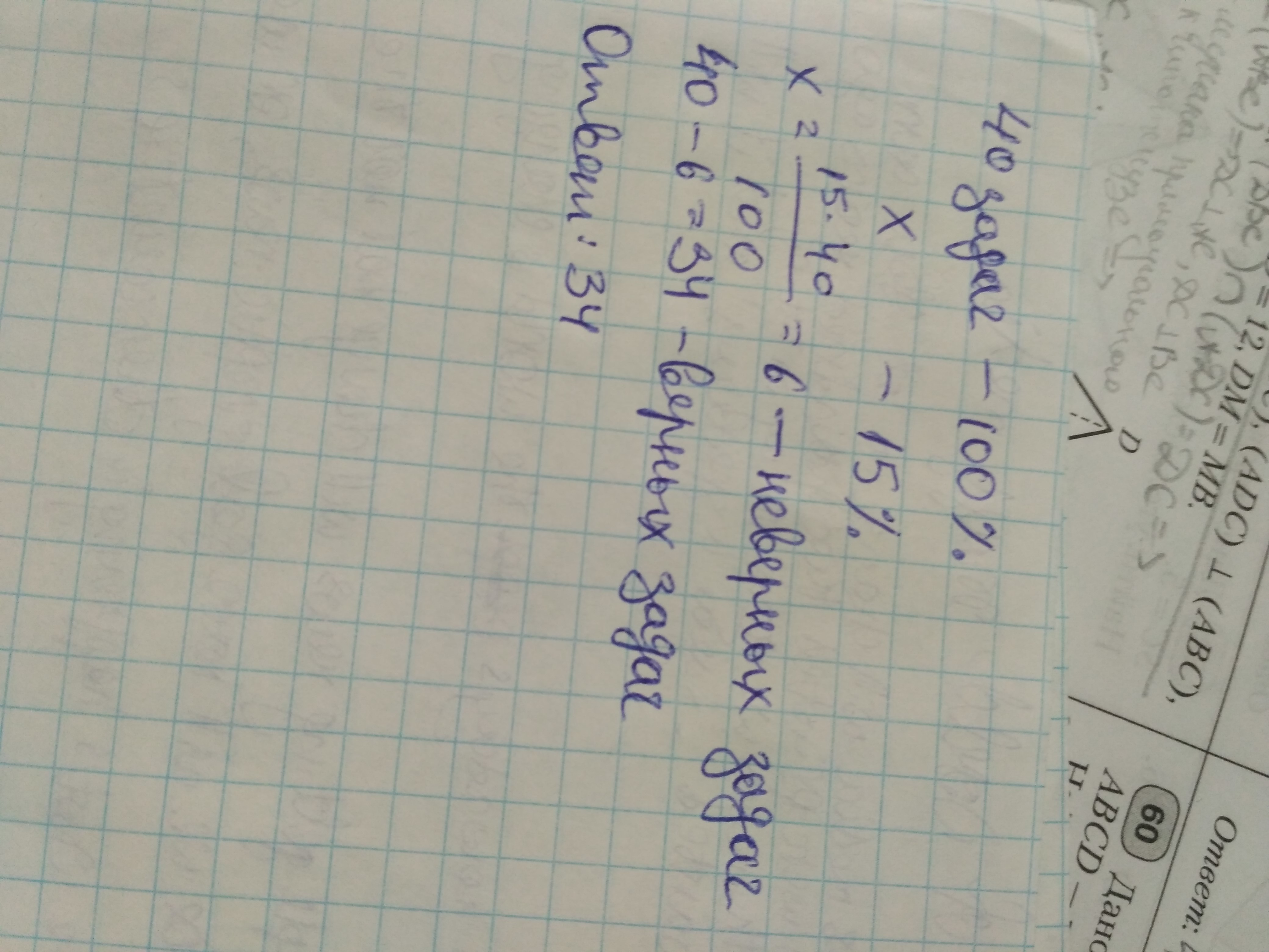 2) 85% от 40 = 0,85 * 40 = 34 задачи,