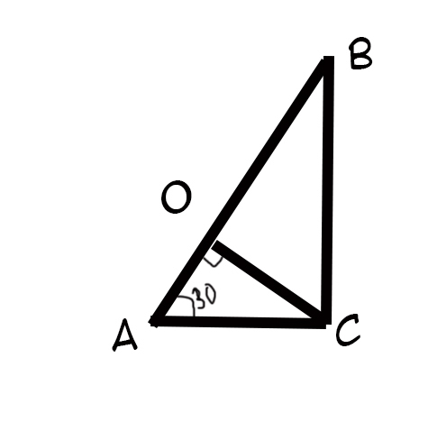 катет ОС лежит против угла в 30 градусов=1/2* гипотенузы АС=8/2=4