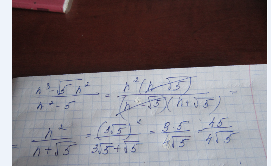 знаменатель разложим на (n -кор.из 5)*( n + кор.из 5) получаем что и в числителе и в знаменателе есть (n - кор.из 5)