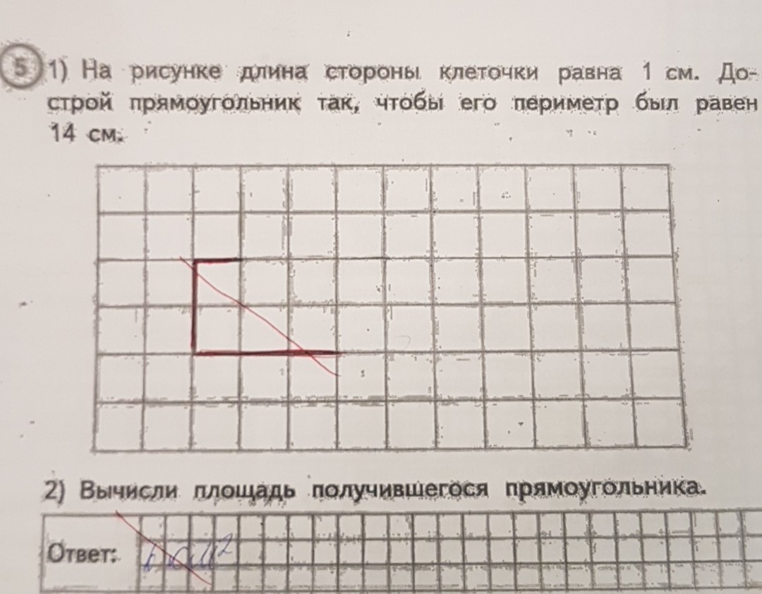 нарисуйте боковые стороны длиной в 2 клеточки (2 см), а другие длиной в 5 клеточек (5 см)