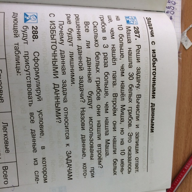 лишние данные они нашли в 3 раза больше грибов чем нашла Маша.