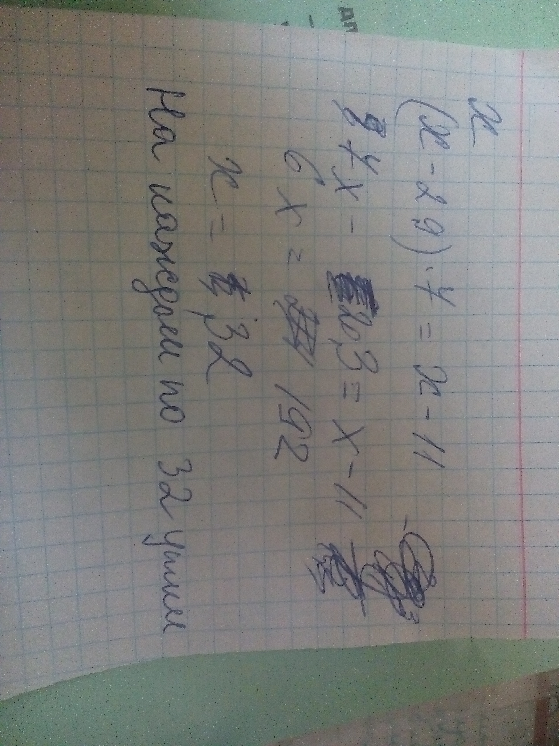 на двух озёрах было поровну уток. когда с первого улетело 29,а со второго 11 уток, то на первом озере осталось в 7 раз меньше чем на втором. сколько уток было вначале на каждом озере?