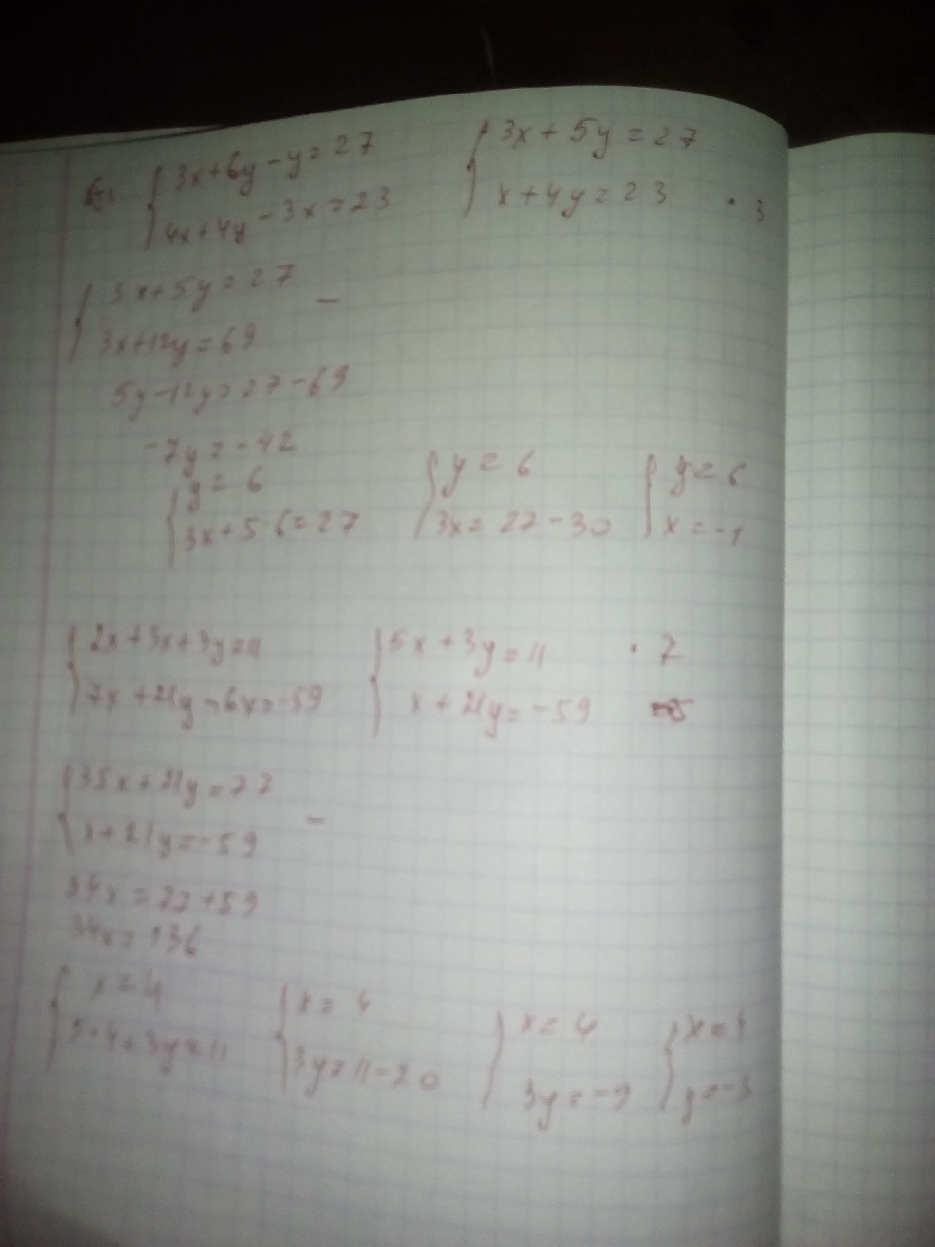 {3(Х+2y)-у=27; {2x+3 (х+ у)=11