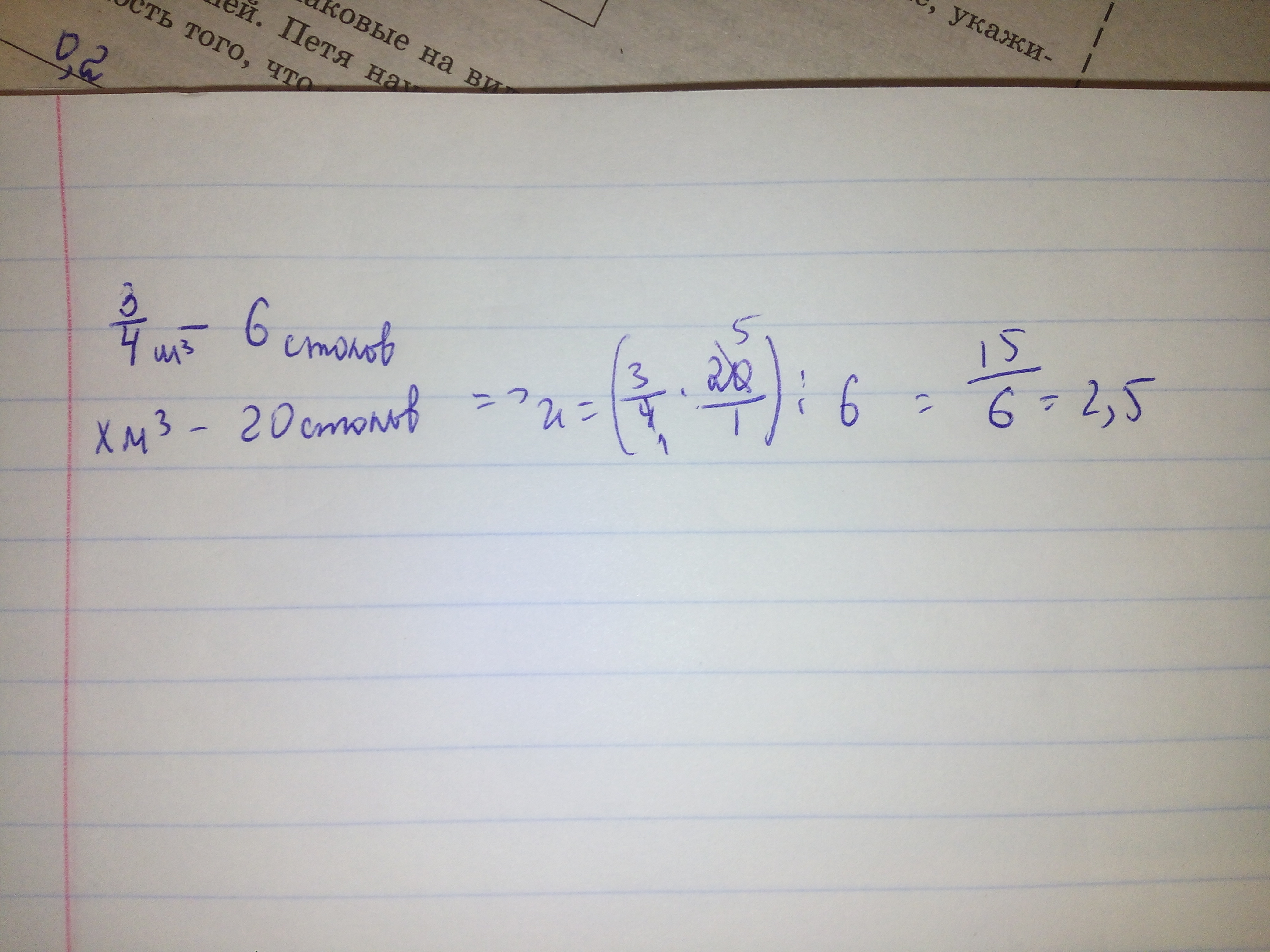 Задача:На изготовление 6 одинаковых столов, ушло ¾м³ древесины. Сколько м³ древесины уйдёт на изготовление 20 таких столов?
