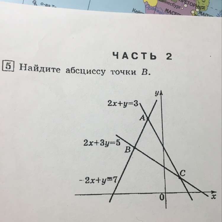 Графики функций -2x+y=7 и 2x+3y=5 пересекаются в точке В. Следовательно запишем их системой: