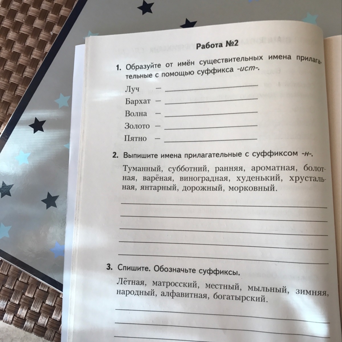 1. Лучистый, бархатистый, волнистый, золотистый, пятнистый.