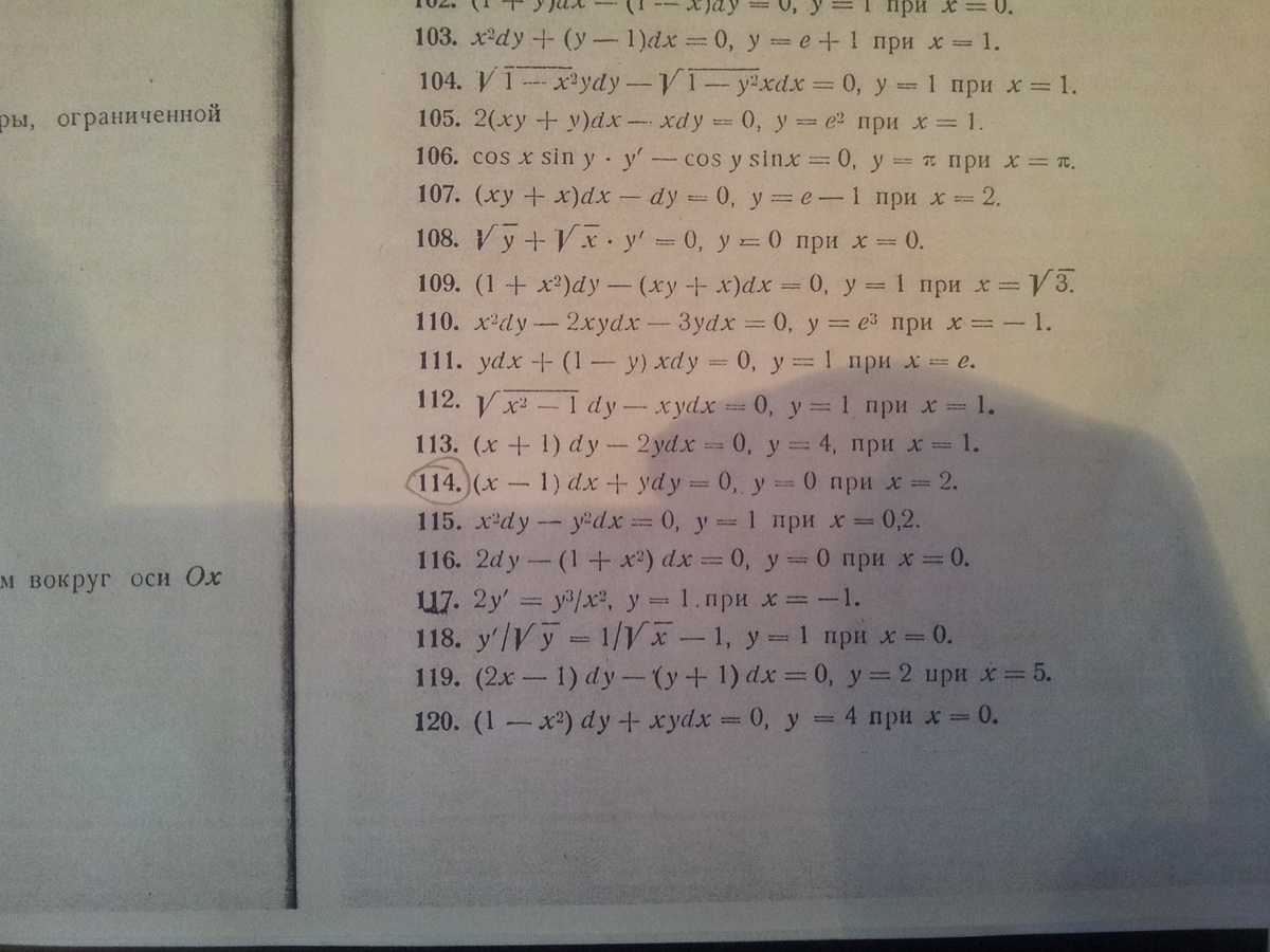(x-1)dx+ydy=0 , y=0 , при x = 2