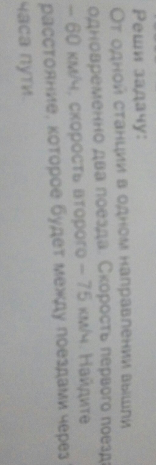 от одной станции в одном направлении вышли одновременно два поезда Скорость первого поезда 60 км в час скорость второго 5 км в час Найдите расстояние которое будет между поездами через 3 часа пути дам 30 балов