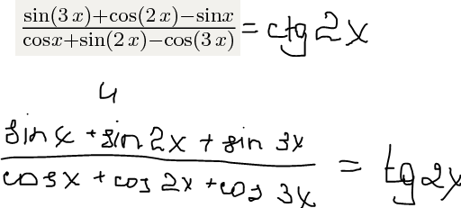 Здравствуйте!Помогите,пожалуйста,справиться с заданиями(их два).Нужно доказать тождество.У меня немного не сходится.хотя я вроде как решаю так же,как мы решали в школе.Подскажите мне,пожалуйста!!Заранее спасибочки:*